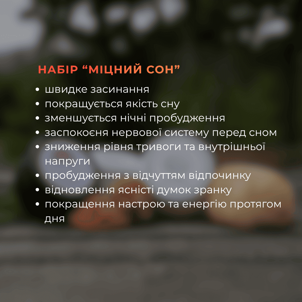Ти засинаєш спокійніше, спиш глибше та прокидаєшся з відчуттям сили, легкості й свіжої голови.